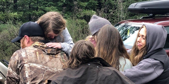 Caroline and Leia Carrico are reunited with family members in this photo released by the Humboldt County Sheriff's Office. (Humboldt County Sheriff's Office)